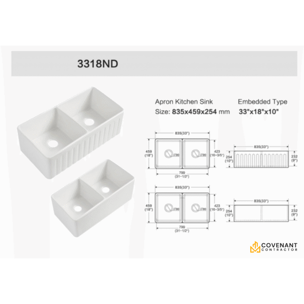 | Bowl Dimensions | 16.5″L × 18″W × 10″D (each) |