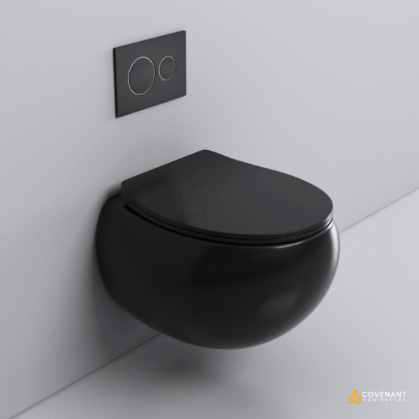 ✔ Patented Snail Geometry – 28% smaller footprint than standard wall toilets