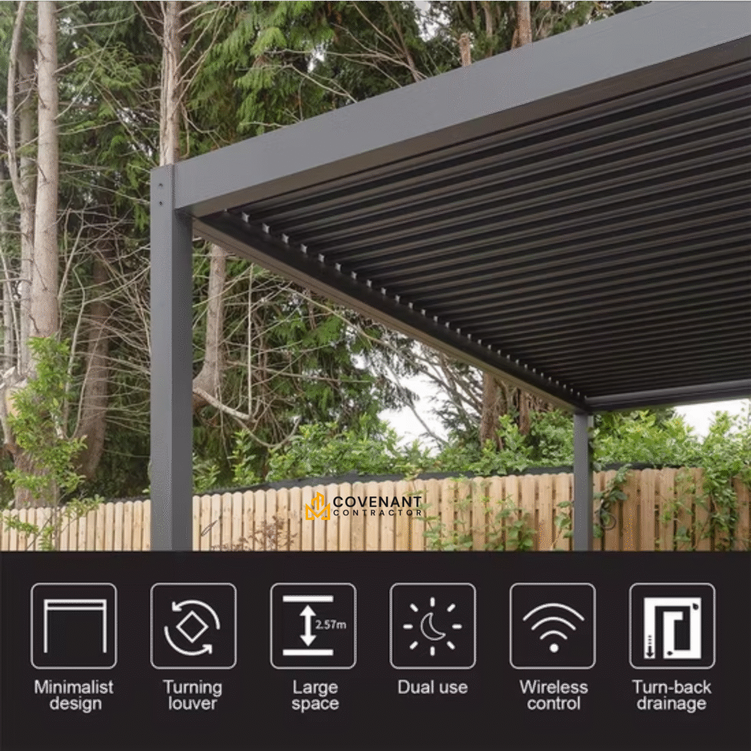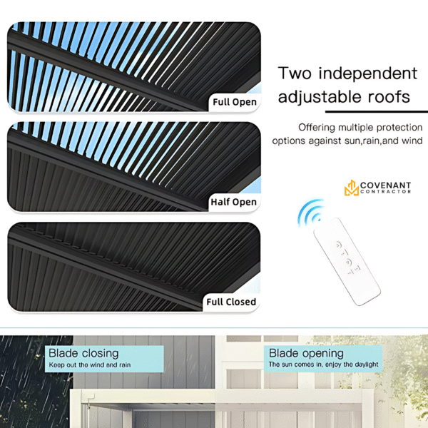 Motorized Adjustable Louver Roof with Waterproof Design